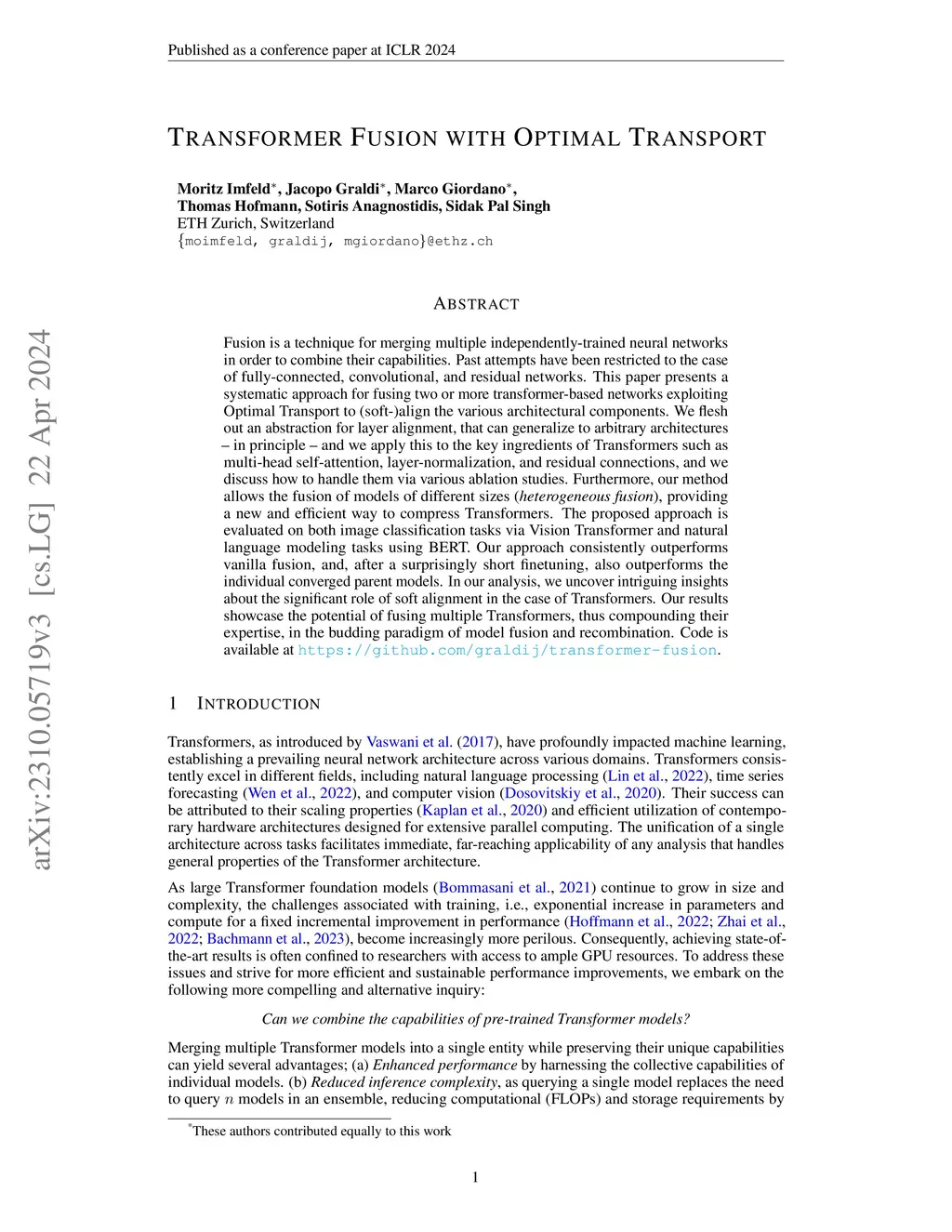 Transformer Fusion with Optimal Transport