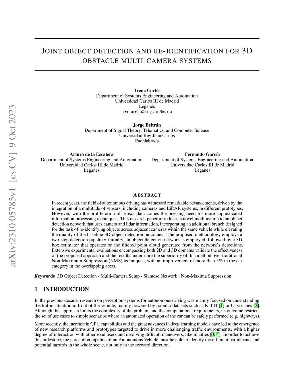 In recent years, the field of autonomous driving has witnessed remarkable advancements, driven by the integration of a multitude of sensors, including cameras and LiDAR systems, in different prototypes. However, with the proliferation of sensor data comes the pressing need for more sophisticated information processing techniques. This research paper introduces a novel modification to an object detection network that uses camera and lidar information, incorporating an additional branch designed for the task of re-identifying objects across adjacent cameras within the same vehicle while elevating the quality of the baseline 3D object detection outcomes. The proposed methodology employs a two-step detection pipeline: initially, an object detection network is employed, followed by a 3D box estimator that operates on the filtered point cloud generated from the network's detections. Extensive experimental evaluations encompassing both 2D and 3D domains validate the effectiveness of the proposed approach and the results underscore the superiority of this method over traditional Non-Maximum Suppression (NMS) techniques, with an improvement of more than 5\% in the car category in the overlapping areas.