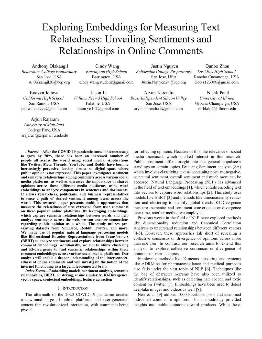 After the COVID-19 pandemic caused internet usage to grow by 70%, there has been an increased number of people all across the world using social media. Applications like Twitter, Meta Threads, YouTube, and Reddit have become increasingly pervasive, leaving almost no digital space where public opinion is not expressed. This paper investigates sentiment and semantic relationships among comments across various social media platforms, as well as discusses the importance of shared opinions across these different media platforms, using word embeddings to analyze components in sentences and documents. It allows researchers, politicians, and business representatives to trace a path of shared sentiment among users across the world. This research paper presents multiple approaches that measure the relatedness of text extracted from user comments on these popular online platforms. By leveraging embeddings, which capture semantic relationships between words and help analyze sentiments across the web, we can uncover connections regarding public opinion as a whole. The study utilizes pre-existing datasets from YouTube, Reddit, Twitter, and more. We made use of popular natural language processing models like Bidirectional Encoder Representations from Transformers (BERT) to analyze sentiments and explore relationships between comment embeddings. Additionally, we aim to utilize clustering and Kl-divergence to find semantic relationships within these comment embeddings across various social media platforms. Our analysis will enable a deeper understanding of the interconnectedness of online comments and will investigate the notion of the internet functioning as a large interconnected brain.