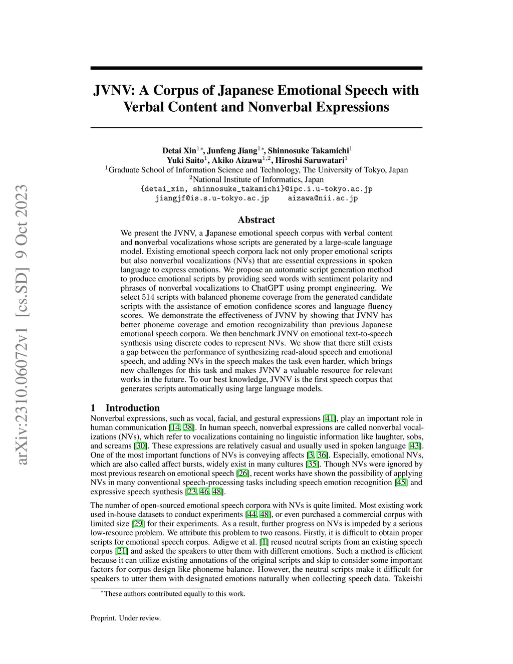 JVNV: A Corpus of Japanese Emotional Speech with Verbal Content and