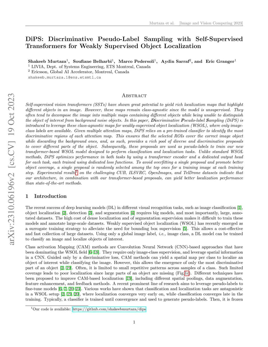 DiPS: Discriminative Pseudo-Label Sampling with Self-Supervised Transformers for Weakly Supervised Object Localization