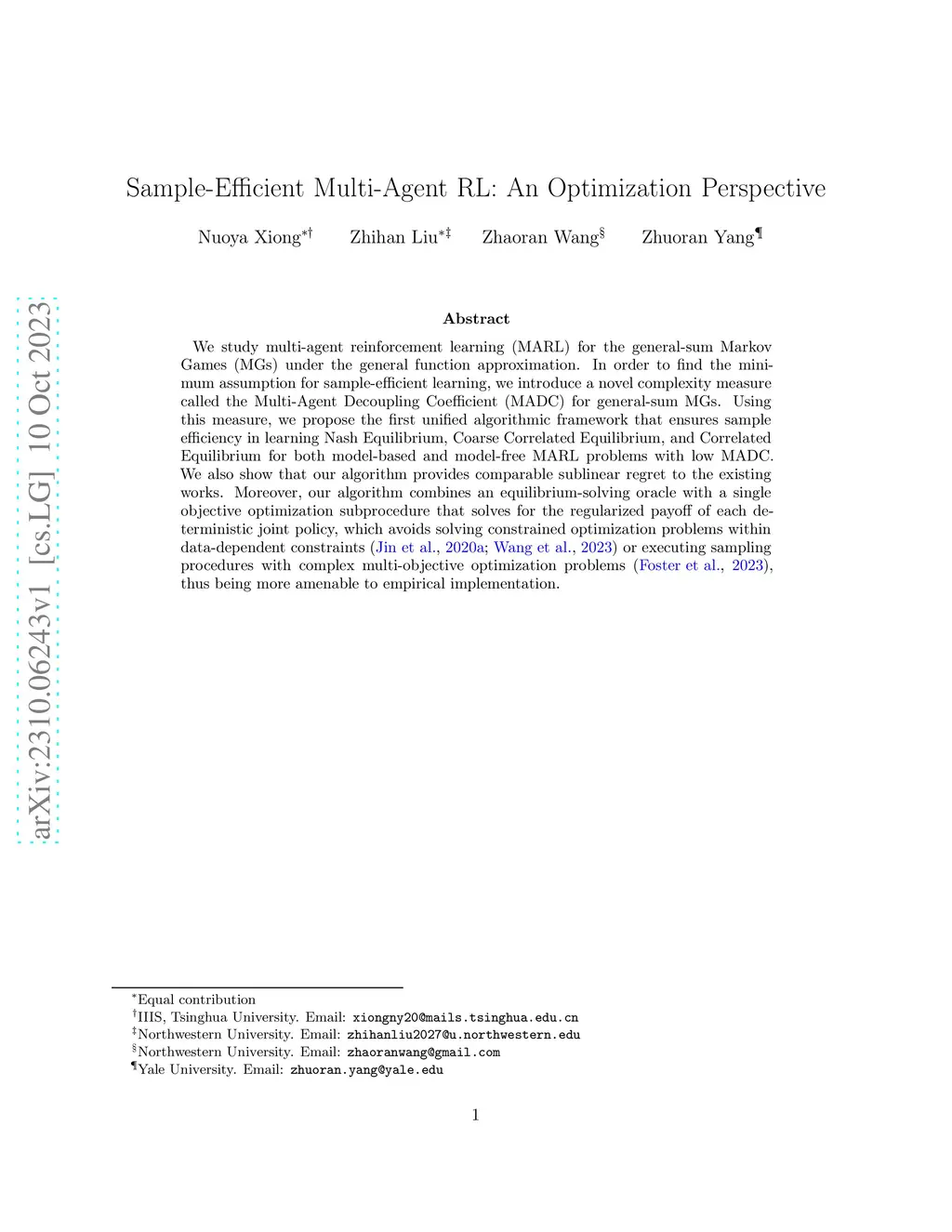 Sample-Efficient Multi-Agent RL: An Optimization Perspective