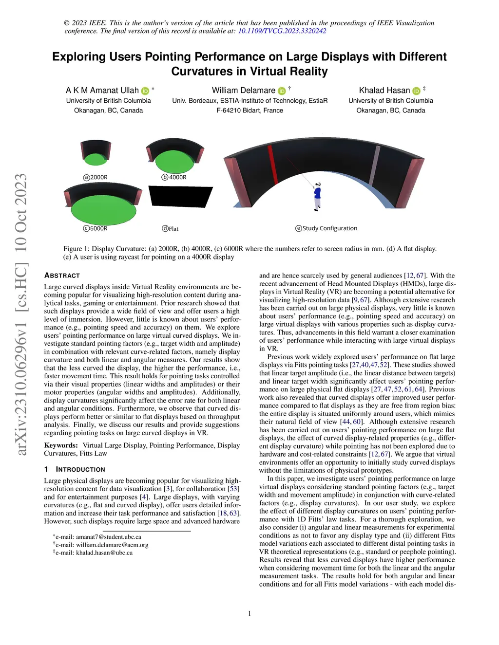 Exploring Users Pointing Performance on Large Displays with Different