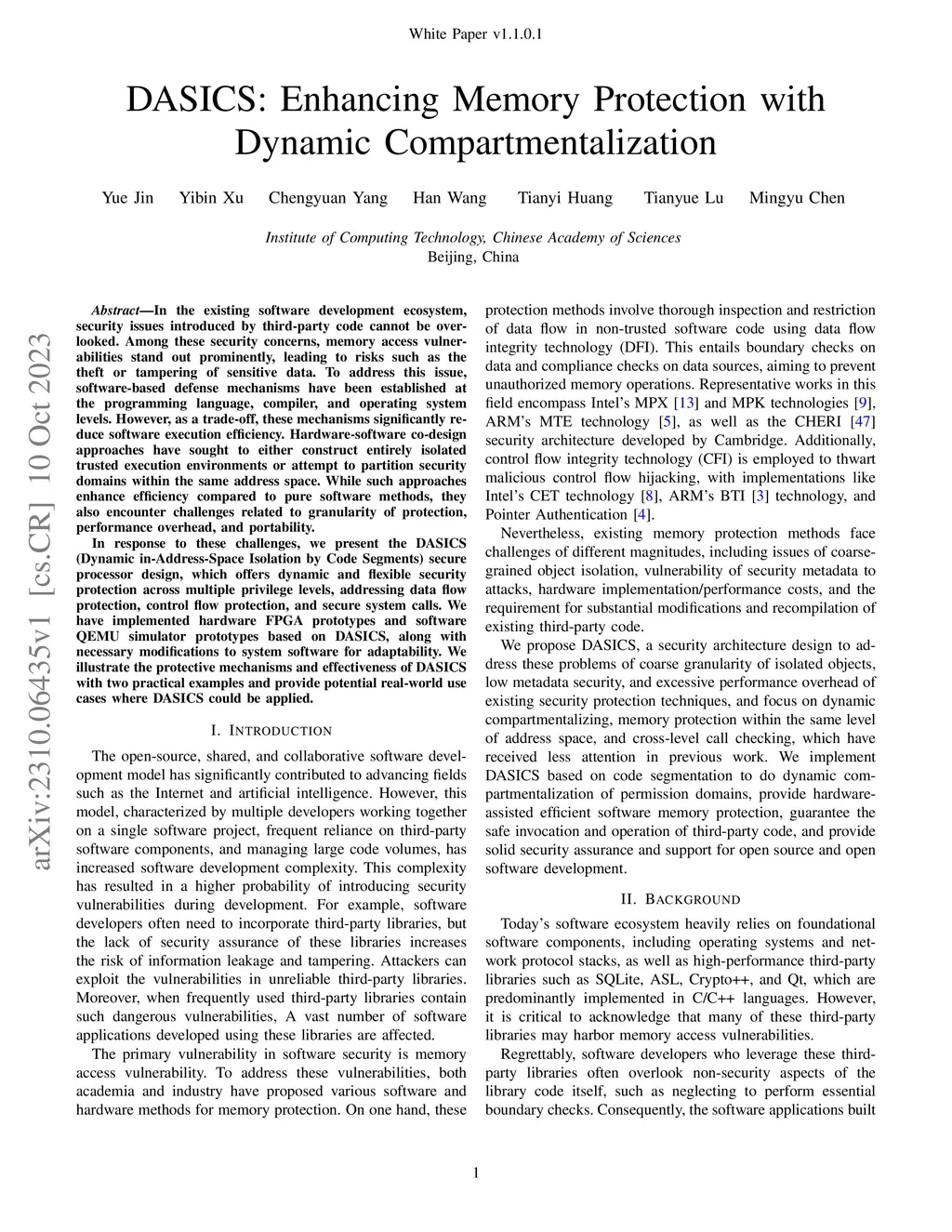 DASICS White Paper: Enhancing Memory Protection with Dynamic Compartmentalization