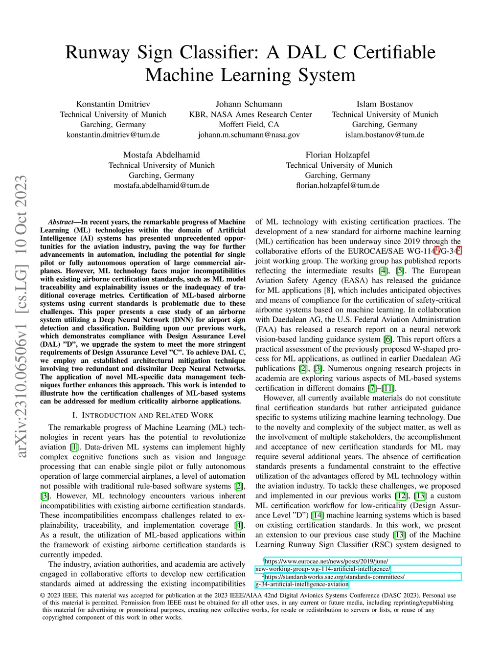 Runway Sign Classifier: A DAL C Certifiable Machine Learning System
