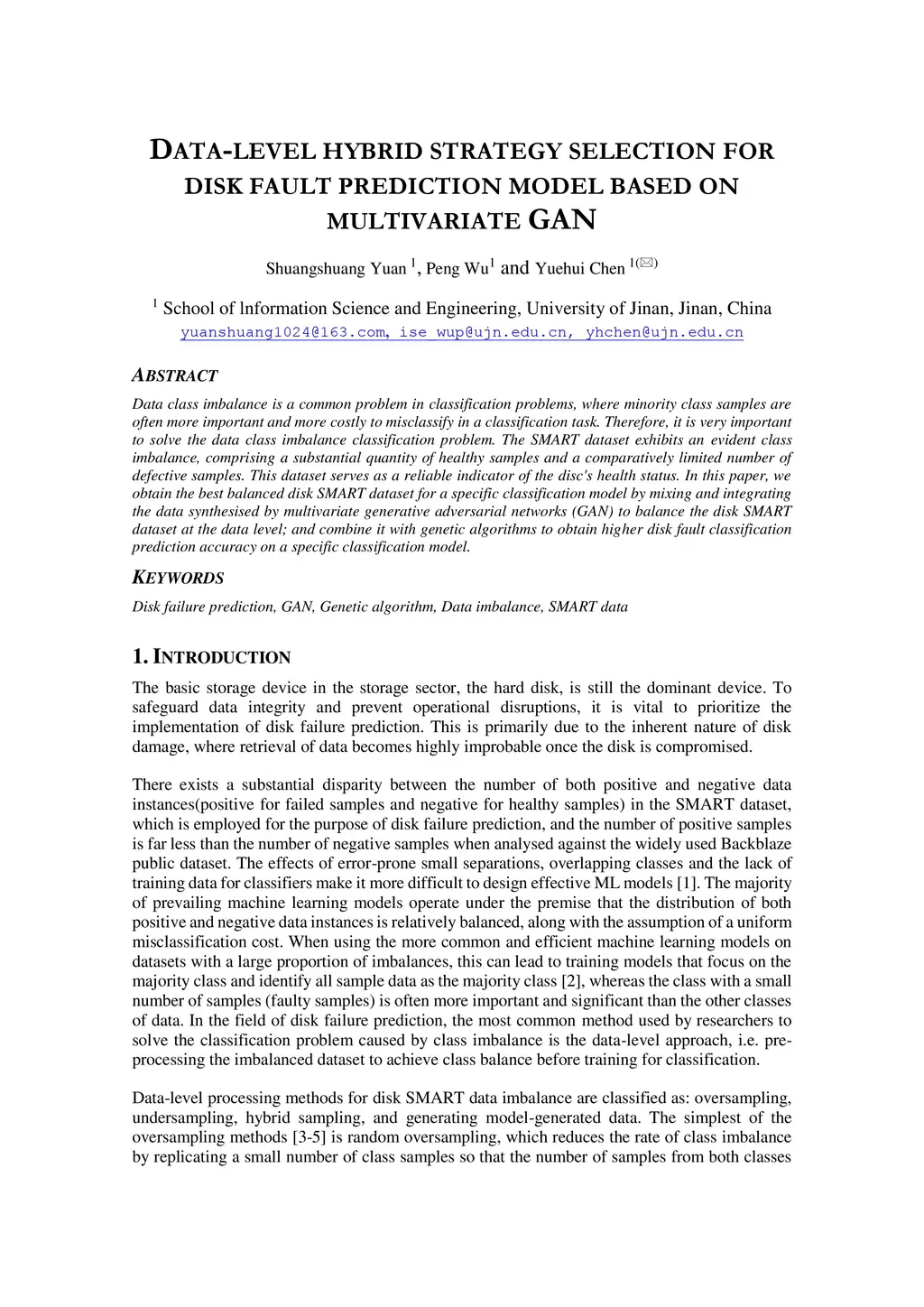 Data class imbalance is a common problem in classification problems, where minority class samples are often more important and more costly to misclassify in a classification task. Therefore, it is very important to solve the data class imbalance classification problem. The SMART dataset exhibits an evident class imbalance, comprising a substantial quantity of healthy samples and a comparatively limited number of defective samples. This dataset serves as a reliable indicator of the disc's health status. In this paper, we obtain the best balanced disk SMART dataset for a specific classification model by mixing and integrating the data synthesised by multivariate generative adversarial networks (GAN) to balance the disk SMART dataset at the data level; and combine it with genetic algorithms to obtain higher disk fault classification prediction accuracy on a specific classification model.
