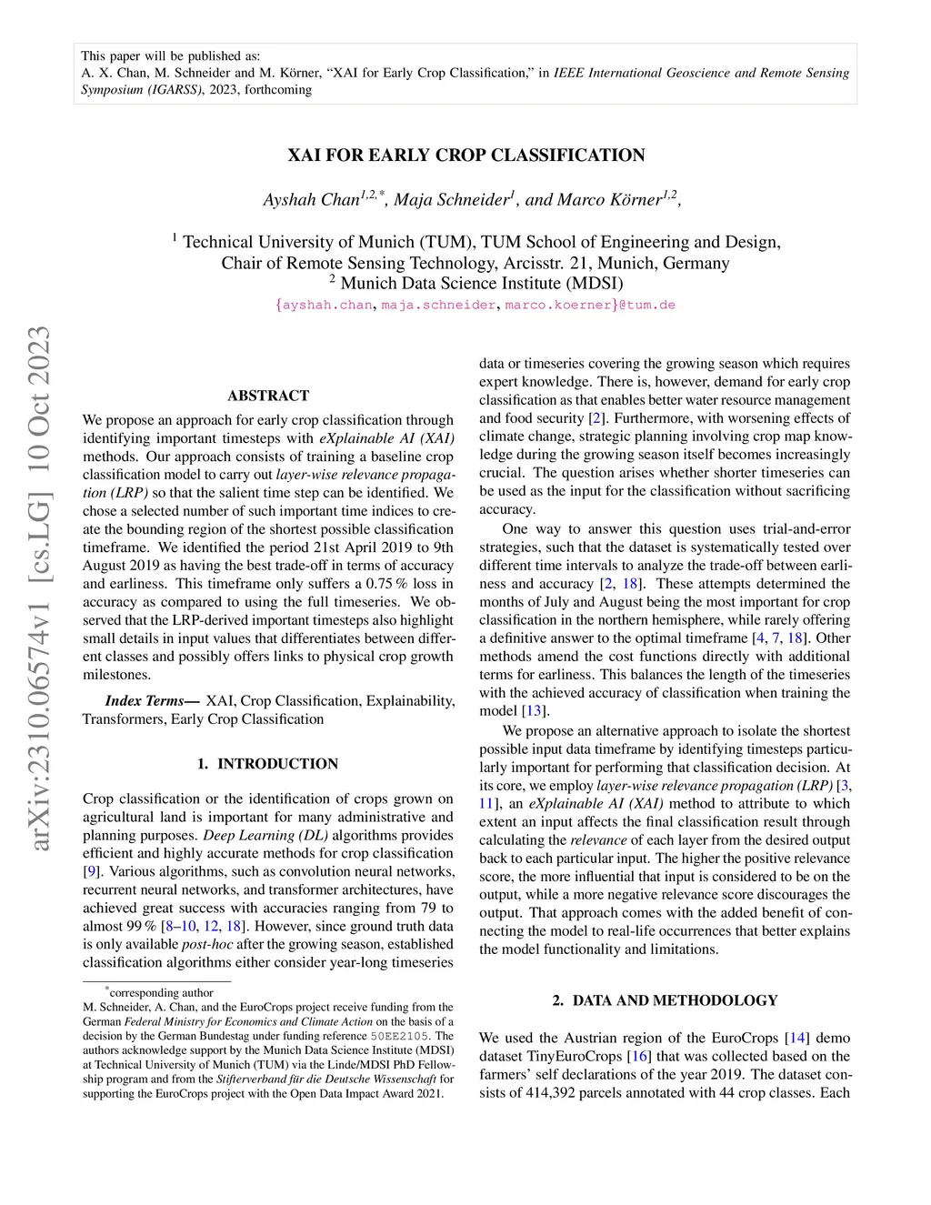 XAI for Early Crop Classification