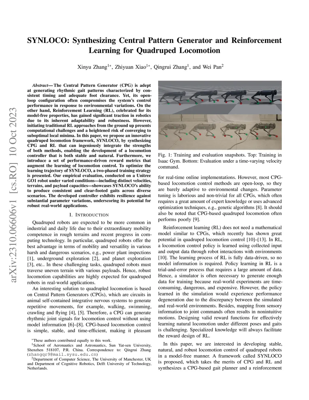 SYNLOCO: Synthesizing Central Pattern Generator and Reinforcement