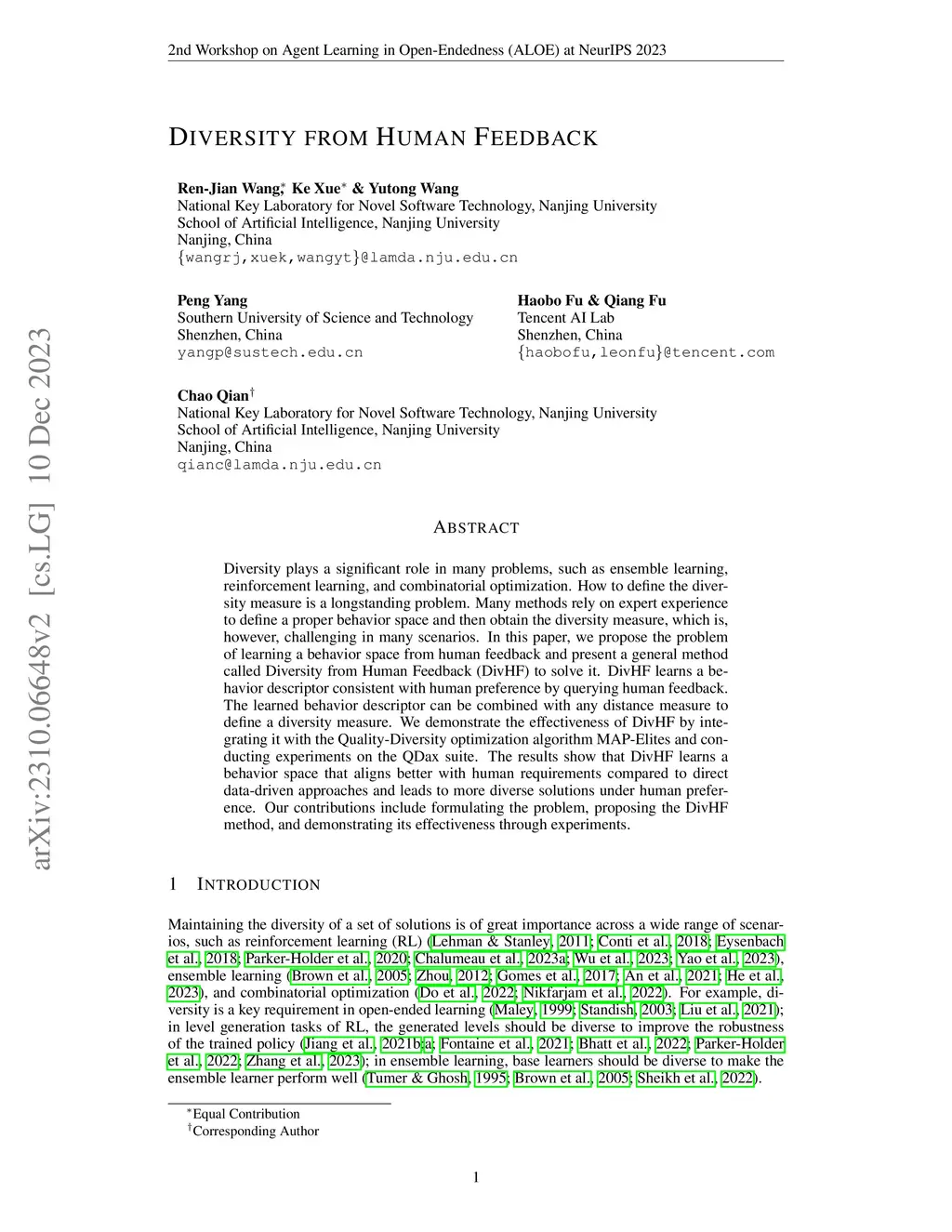 Diversity from Human Feedback