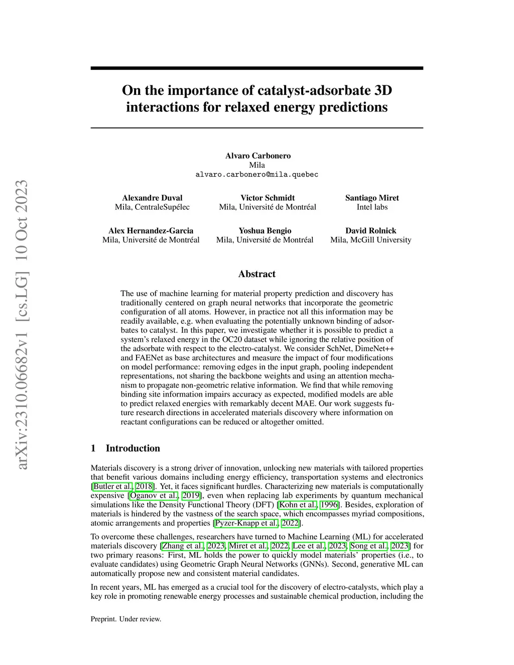 The use of machine learning for material property prediction and discovery has traditionally centered on graph neural networks that incorporate the geometric configuration of all atoms. However, in practice not all this information may be readily available, e.g.~when evaluating the potentially unknown binding of adsorbates to catalyst. In this paper, we investigate whether it is possible to predict a system's relaxed energy in the OC20 dataset while ignoring the relative position of the adsorbate with respect to the electro-catalyst. We consider SchNet, DimeNet++ and FAENet as base architectures and measure the impact of four modifications on model performance: removing edges in the input graph, pooling independent representations, not sharing the backbone weights and using an attention mechanism to propagate non-geometric relative information. We find that while removing binding site information impairs accuracy as expected, modified models are able to predict relaxed energies with remarkably decent MAE. Our work suggests future research directions in accelerated materials discovery where information on reactant configurations can be reduced or altogether omitted.
