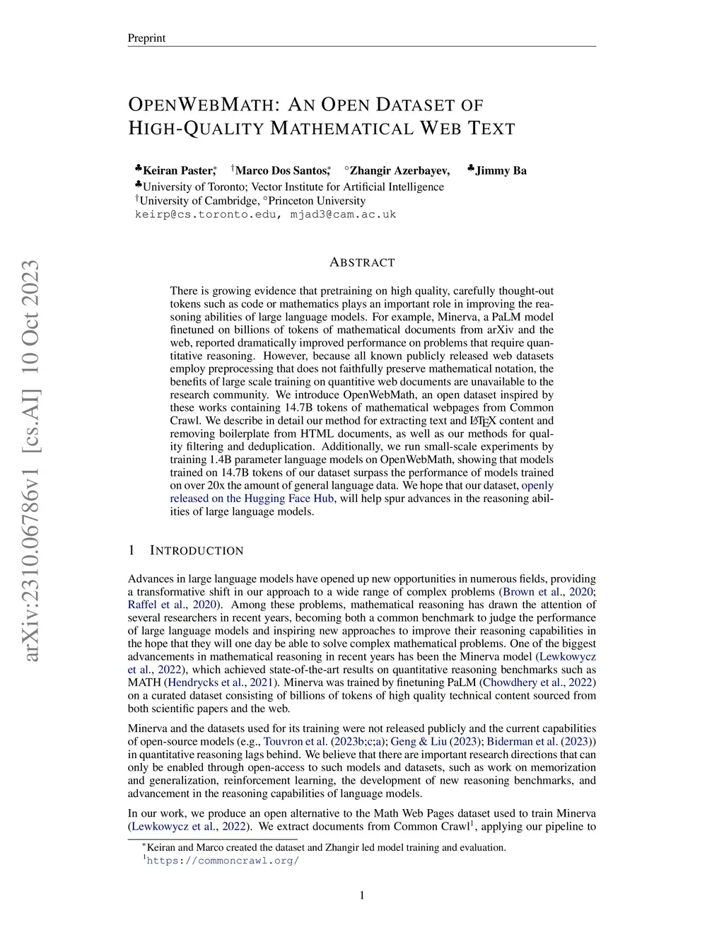 OpenWebMath: An Open Dataset of High-Quality Mathematical Web Text