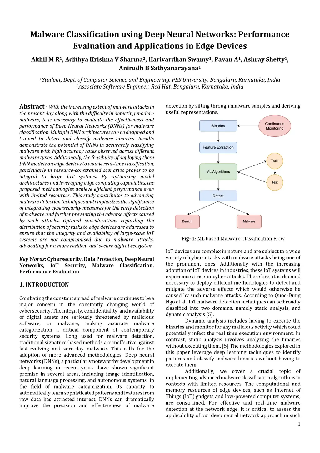 With the increasing extent of malware attacks in the present day along with the difficulty in detecting modern malware, it is necessary to evaluate the effectiveness and performance of Deep Neural Networks (DNNs) for malware classification. Multiple DNN architectures can be designed and trained to detect and classify malware binaries. Results demonstrate the potential of DNNs in accurately classifying malware with high accuracy rates observed across different malware types. Additionally, the feasibility of deploying these DNN models on edge devices to enable real-time classification, particularly in resource-constrained scenarios proves to be integral to large IoT systems. By optimizing model architectures and leveraging edge computing capabilities, the proposed methodologies achieve efficient performance even with limited resources. This study contributes to advancing malware detection techniques and emphasizes the significance of integrating cybersecurity measures for the early detection of malware and further preventing the adverse effects caused by such attacks. Optimal considerations regarding the distribution of security tasks to edge devices are addressed to ensure that the integrity and availability of large scale IoT systems are not compromised due to malware attacks, advocating for a more resilient and secure digital ecosystem.