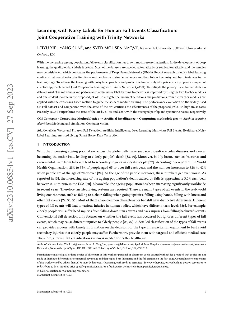 Learning with Noisy Labels for Human Fall Events Classification: Joint