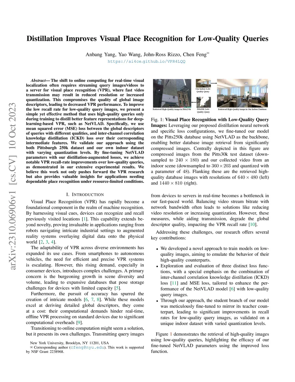 Distillation Improves Visual Place Recognition for Low Quality Images