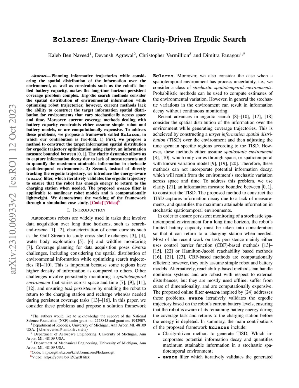 Eclares: Energy-Aware Clarity-Driven Ergodic Search