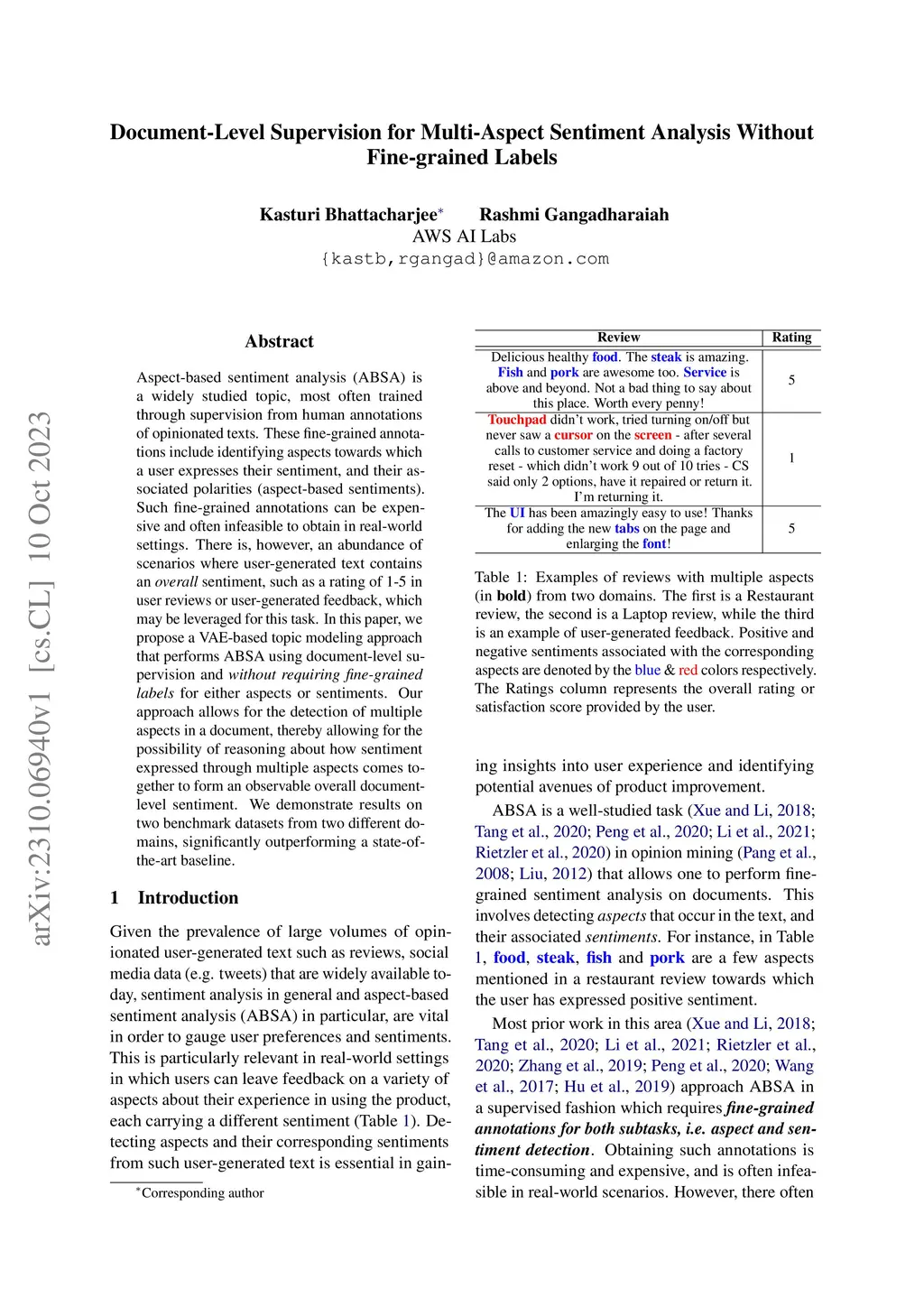 Document-Level Supervision for Multi-Aspect Sentiment Analysis Without