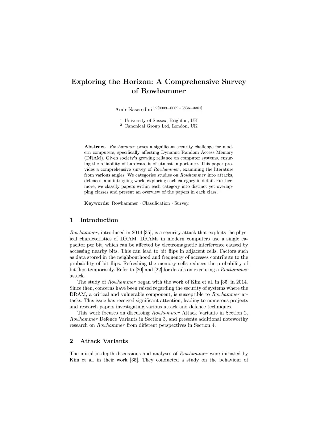 Rowhammer poses a significant security challenge for modern computers, specifically affecting Dynamic Random Access Memory(DRAM). Given society's growing reliance on computer systems, ensuring the reliability of hardware is of utmost importance. This paper provides a comprehensive survey of Rowhammer, examining the literature from various angles. We categorise studies on Rowhammer into attacks, defences, and intriguing work, exploring each category in detail. Furthermore, we classify papers within each category into distinct yet overlapping classes and present an overview of the papers in each class.