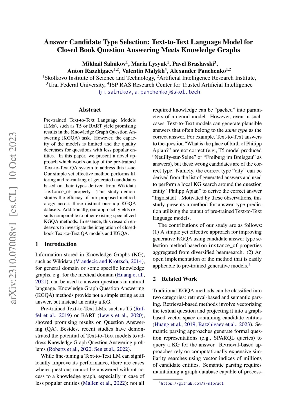 Pre-trained Text-to-Text Language Models (LMs), such as T5 or BART yield promising results in the Knowledge Graph Question Answering (KGQA) task. However, the capacity of the models is limited and the quality decreases for questions with less popular entities. In this paper, we present a novel approach which works on top of the pre-trained Text-to-Text QA system to address this issue. Our simple yet effective method performs filtering and re-ranking of generated candidates based on their types derived from Wikidata "instance_of" property.