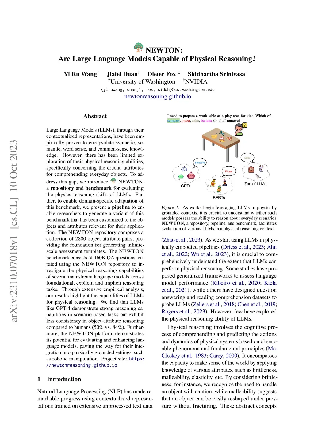 NEWTON: Are Large Language Models Capable of Physical Reasoning?
