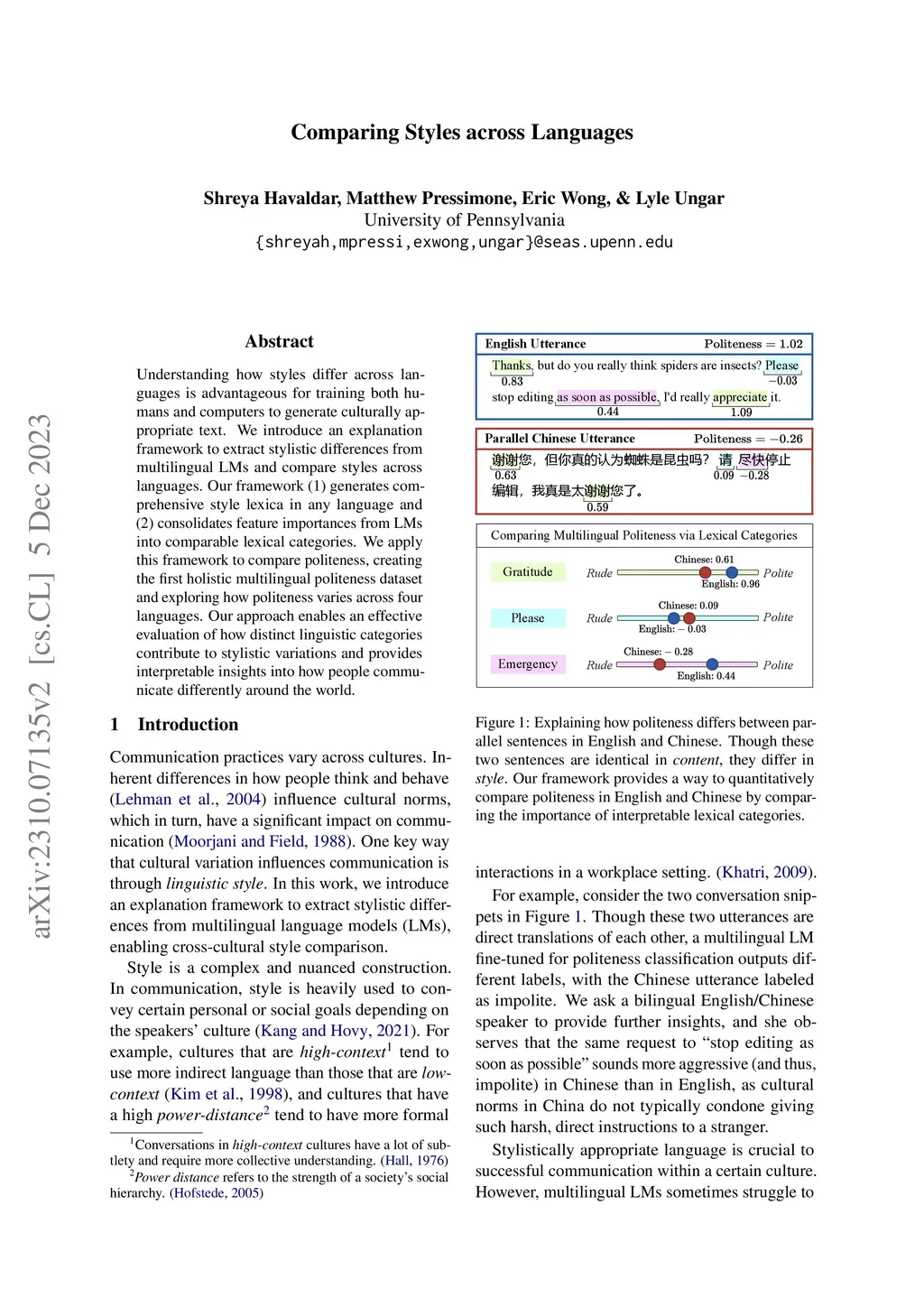 Comparing Styles across Languages: A Cross-Cultural Exploration of Politeness