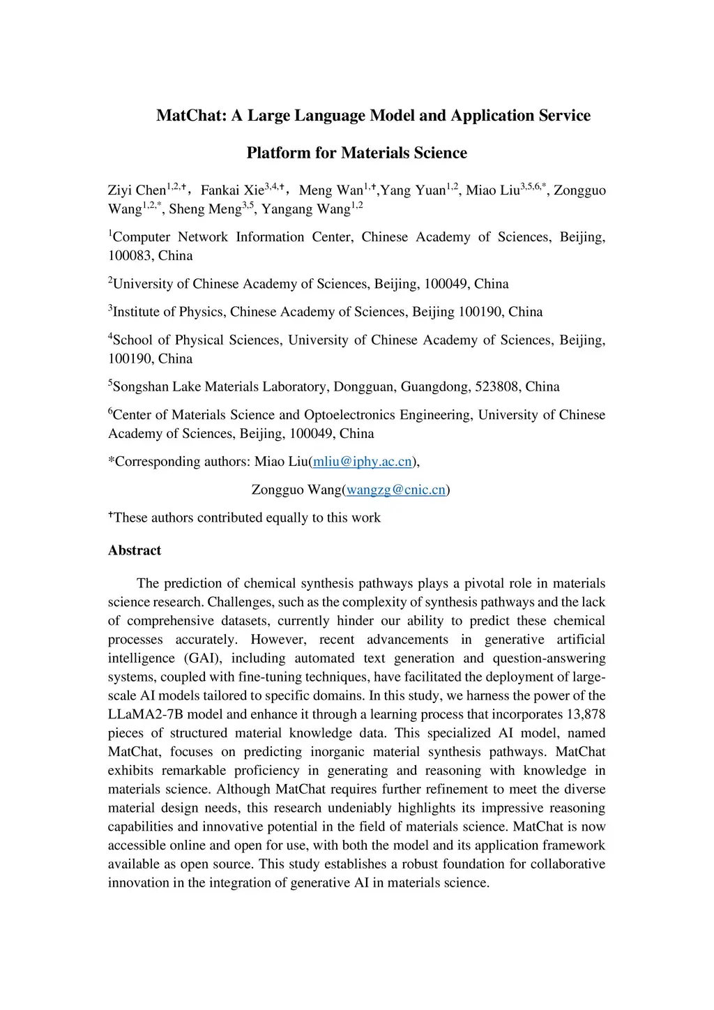 MatChat: A Large Language Model and Application Service Platform for