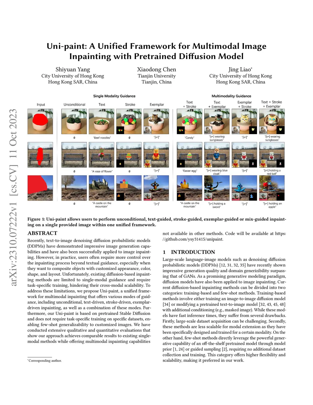 Uni-paint: A Unified Framework for Multimodal Image Inpainting with