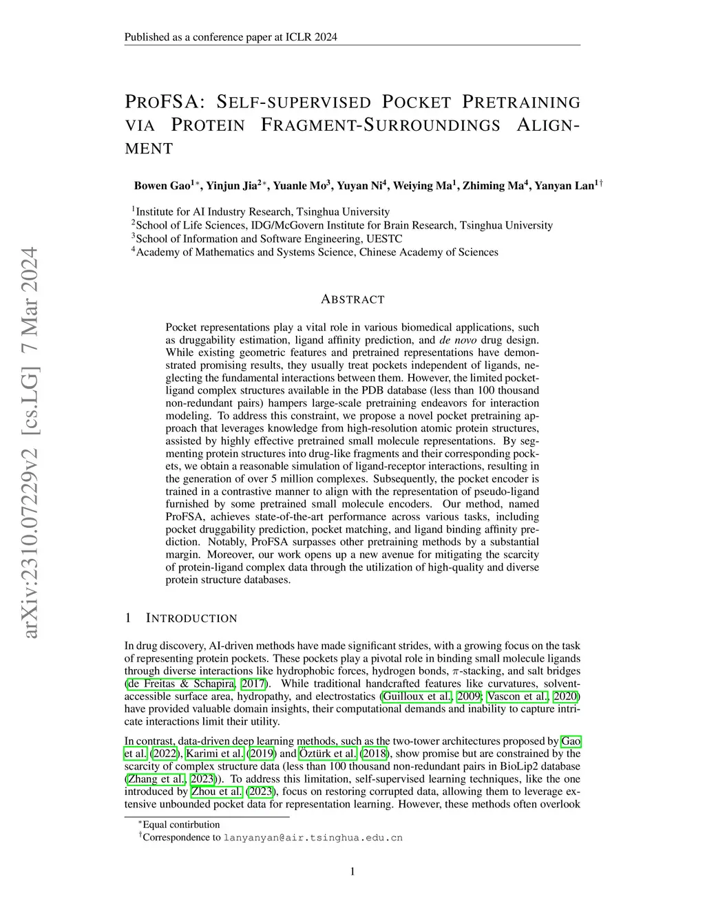 ProFSA: Self-supervised Pocket Pretraining via Protein