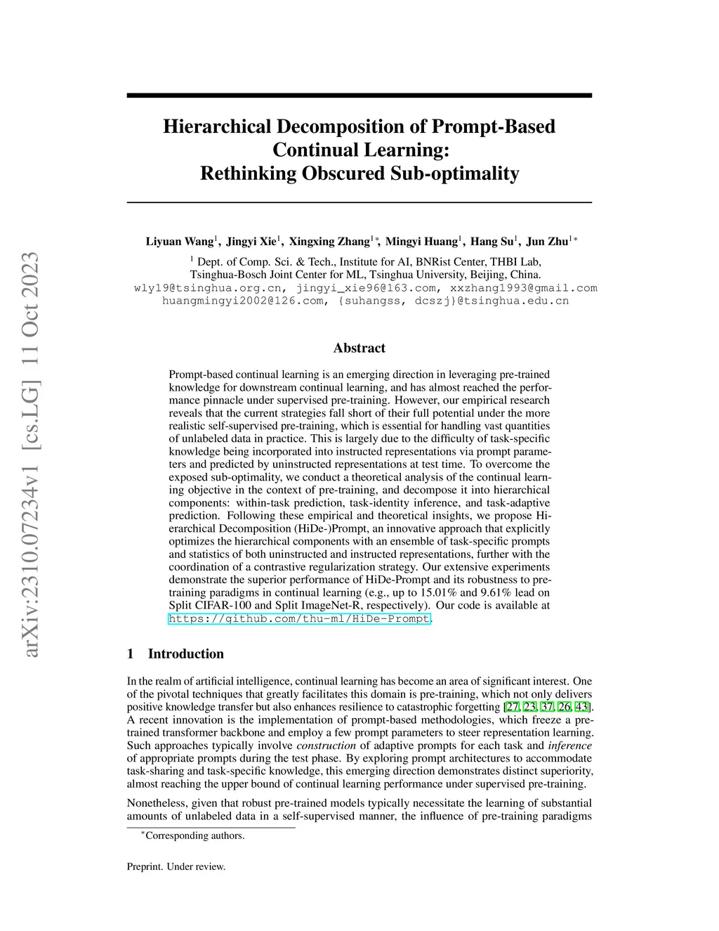 Hierarchical Decomposition of Prompt-Based Continual Learning: