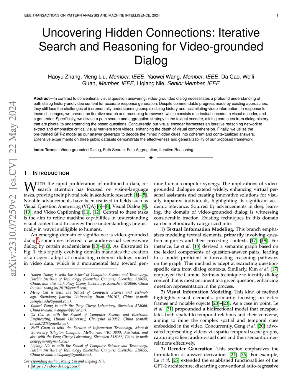 Uncovering Hidden Connections: Iterative Search and Reasoning for Video-grounded Dialog
