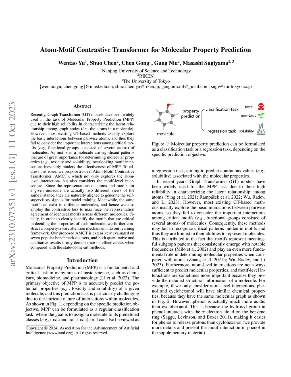 Atom-Motif Contrastive Transformer for Molecular Property Prediction