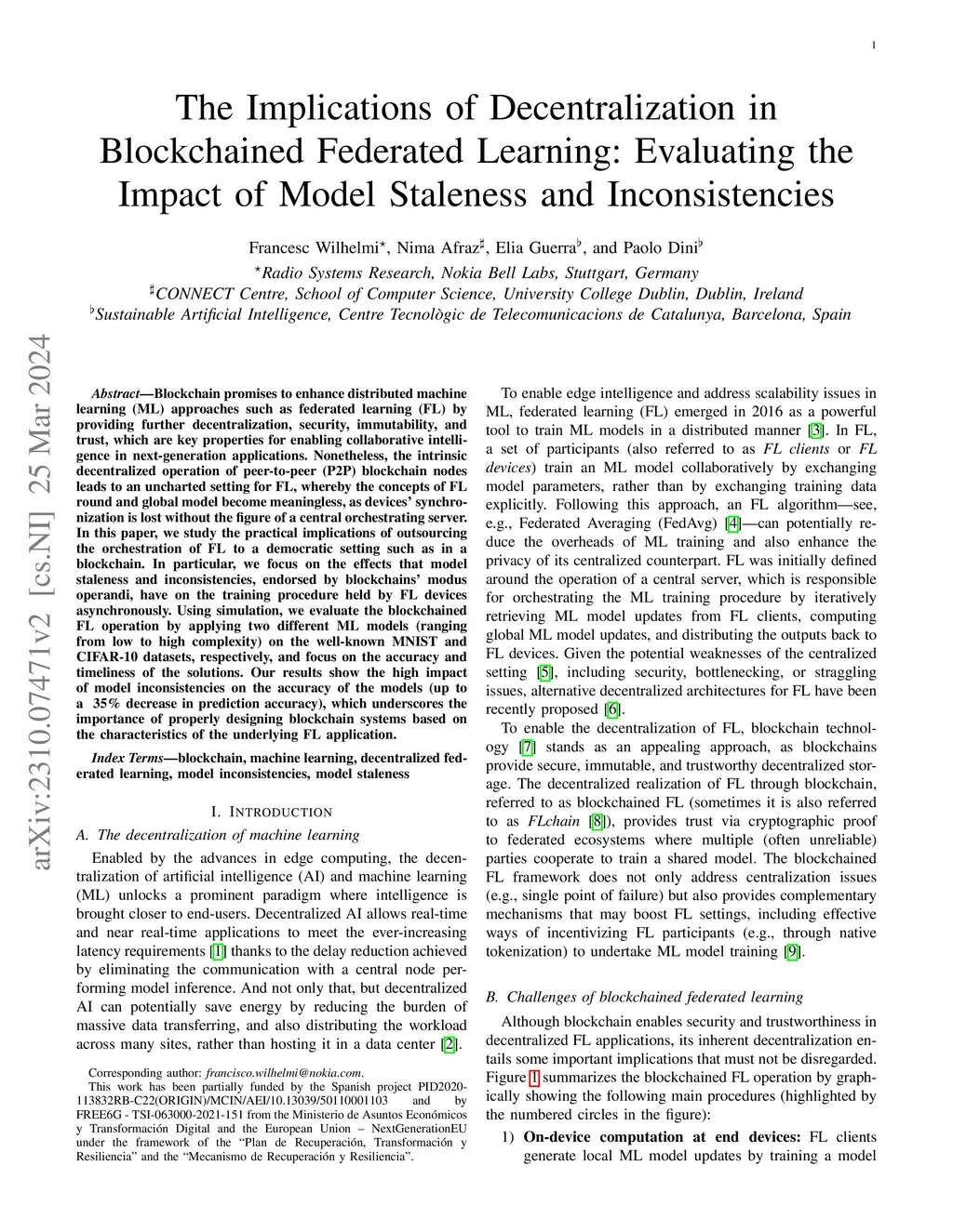 The Implications of Decentralization in Blockchained Federated Learning: