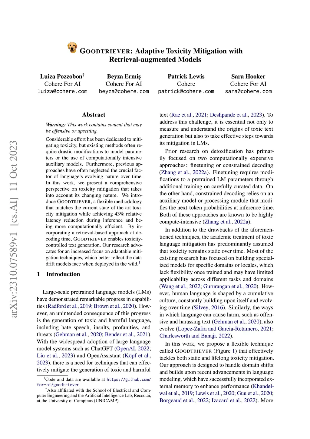 Goodtriever: Adaptive Toxicity Mitigation with Retrieval-augmented
