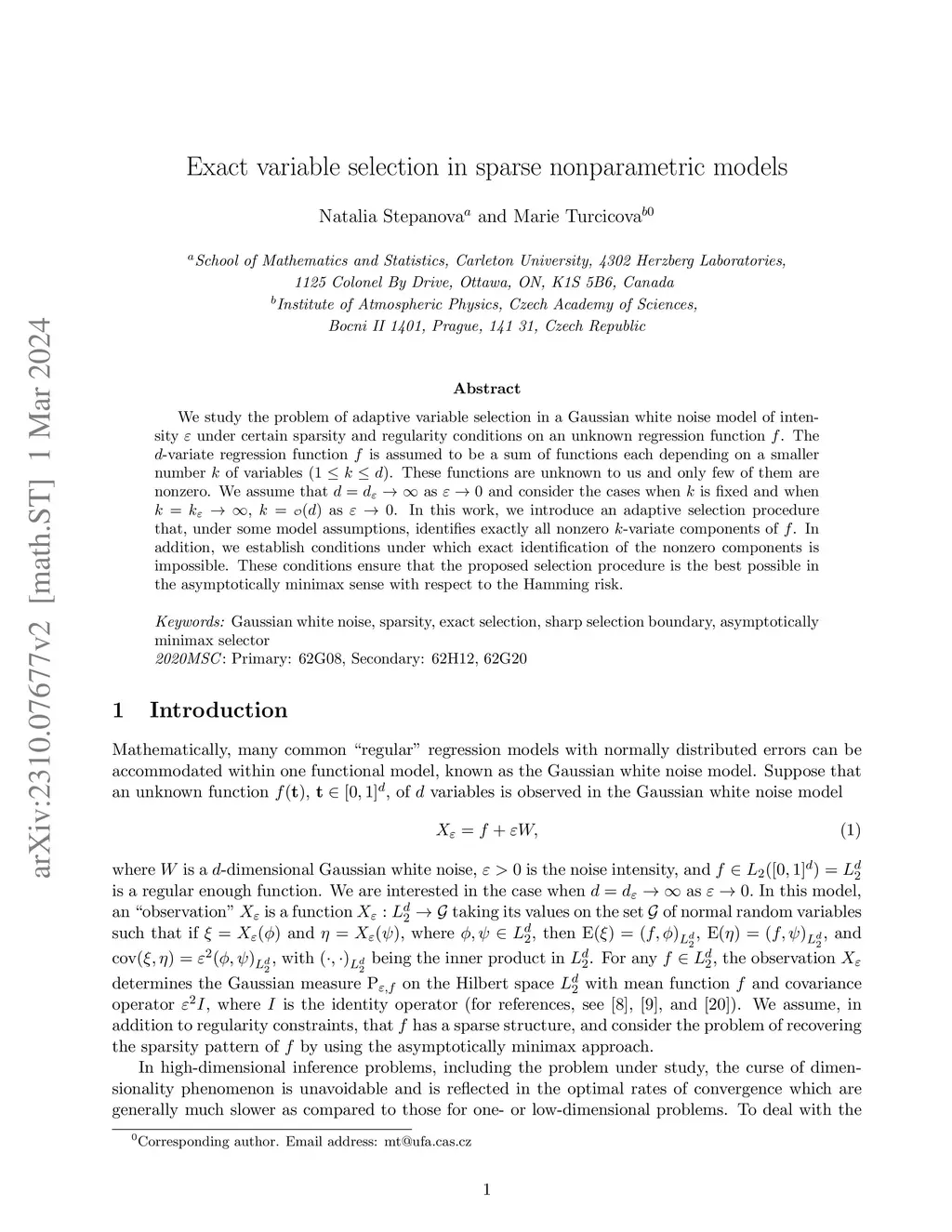 We study the problem of adaptive variable selection in a Gaussian white noise model of intensity under certain sparsity and regularity conditions on an unknown regression function . The -variate regression function is assumed to be a sum of functions each depending on a smaller number of variables (). These functions are unknown to us and only few of them are nonzero. We assume that as and consider the cases when is fixed and when , as . In this work, we introduce an adaptive selection procedure that, under some model assumptions, identifies exactly all nonzero -variate components of . In addition, we establish conditions under which exact identification of the nonzero components is impossible. These conditions ensure that the proposed selection procedure is the best possible in the asymptotically minimax sense with respect to the Hamming risk.