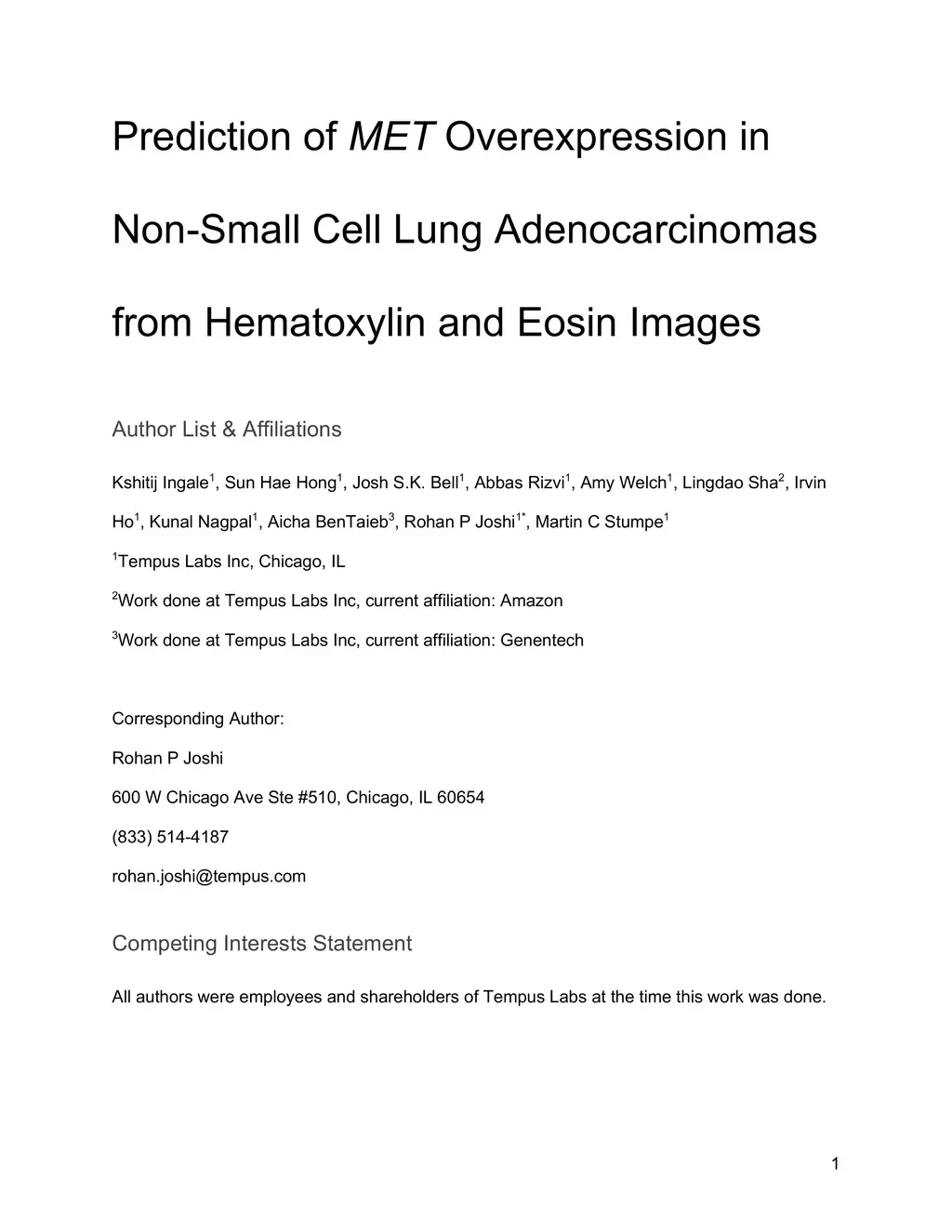 Prediction of MET Overexpression in Non-Small Cell Lung Adenocarcinomas