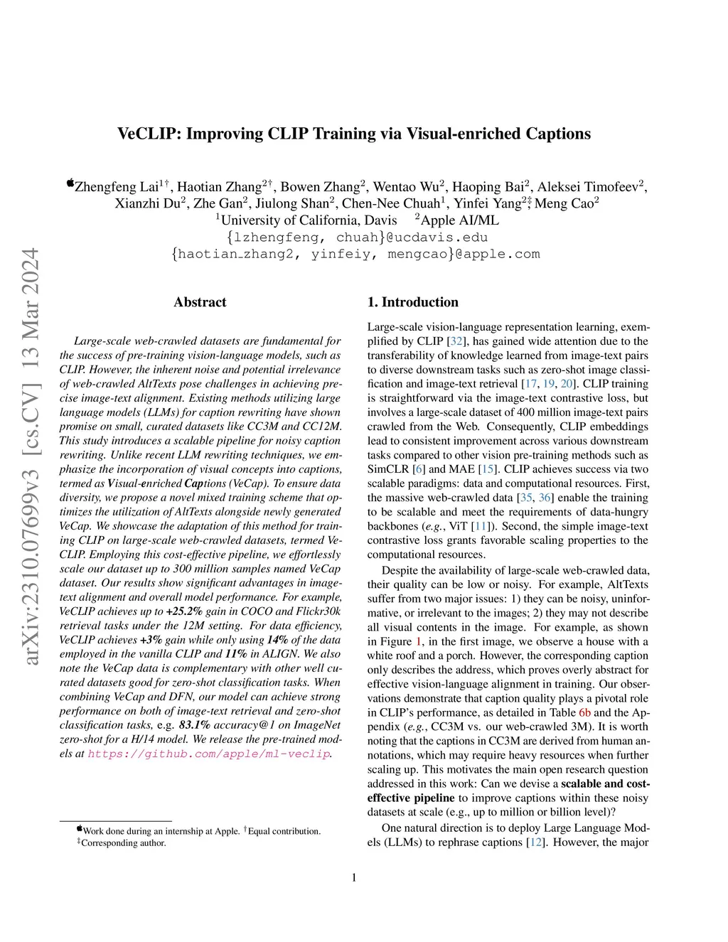VeCLIP: Improving CLIP Training via Visual-enriched Captions