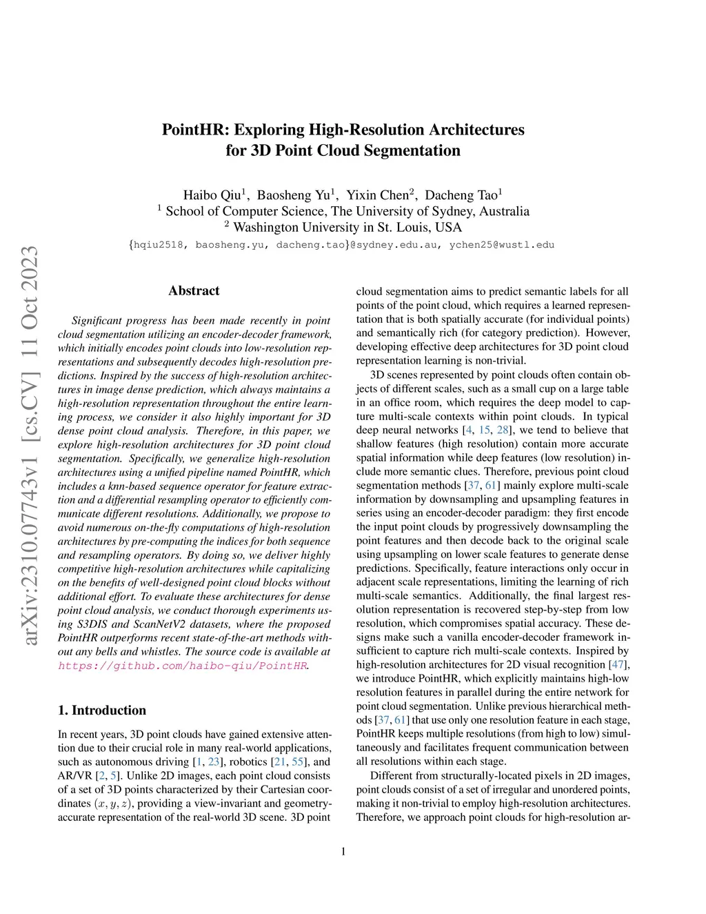 PointHR: Exploring High-Resolution Architectures for 3D Point Cloud