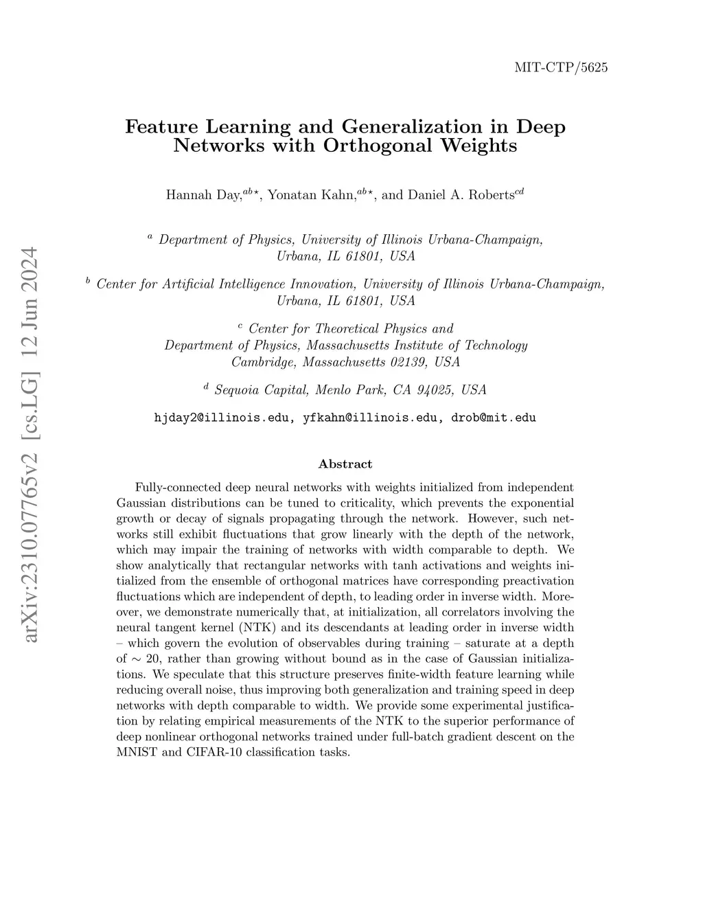 Feature Learning and Generalization in Deep Networks with Orthogonal