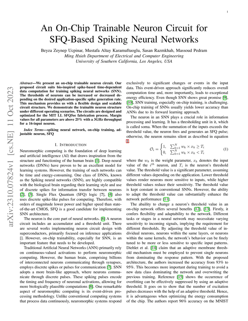 We present an on-chip trainable neuron circuit. Our proposed circuit suits bio-inspired spike-based time-dependent data computation for training spiking neural networks (SNN). The thresholds of neurons can be increased or decreased depending on the desired application-specific spike generation rate. This mechanism provides us with a flexible design and scalable circuit structure. We demonstrate the trainable neuron structure under different operating scenarios. The circuits are designed and optimized for the MIT LL SFQ5ee fabrication process. Margin values for all parameters are above 25\% with a 3GHz throughput for a 16-input neuron.