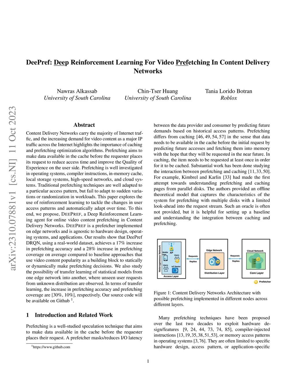 DeePref: Deep Reinforcement Learning For Video Prefetching In Content