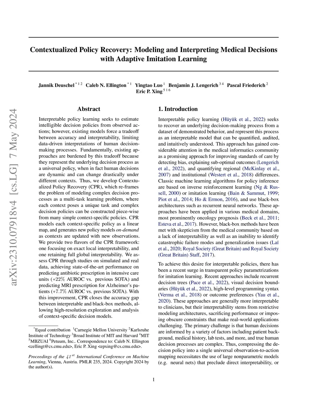 Contextualized Policy Recovery: Modeling and Interpreting Medical