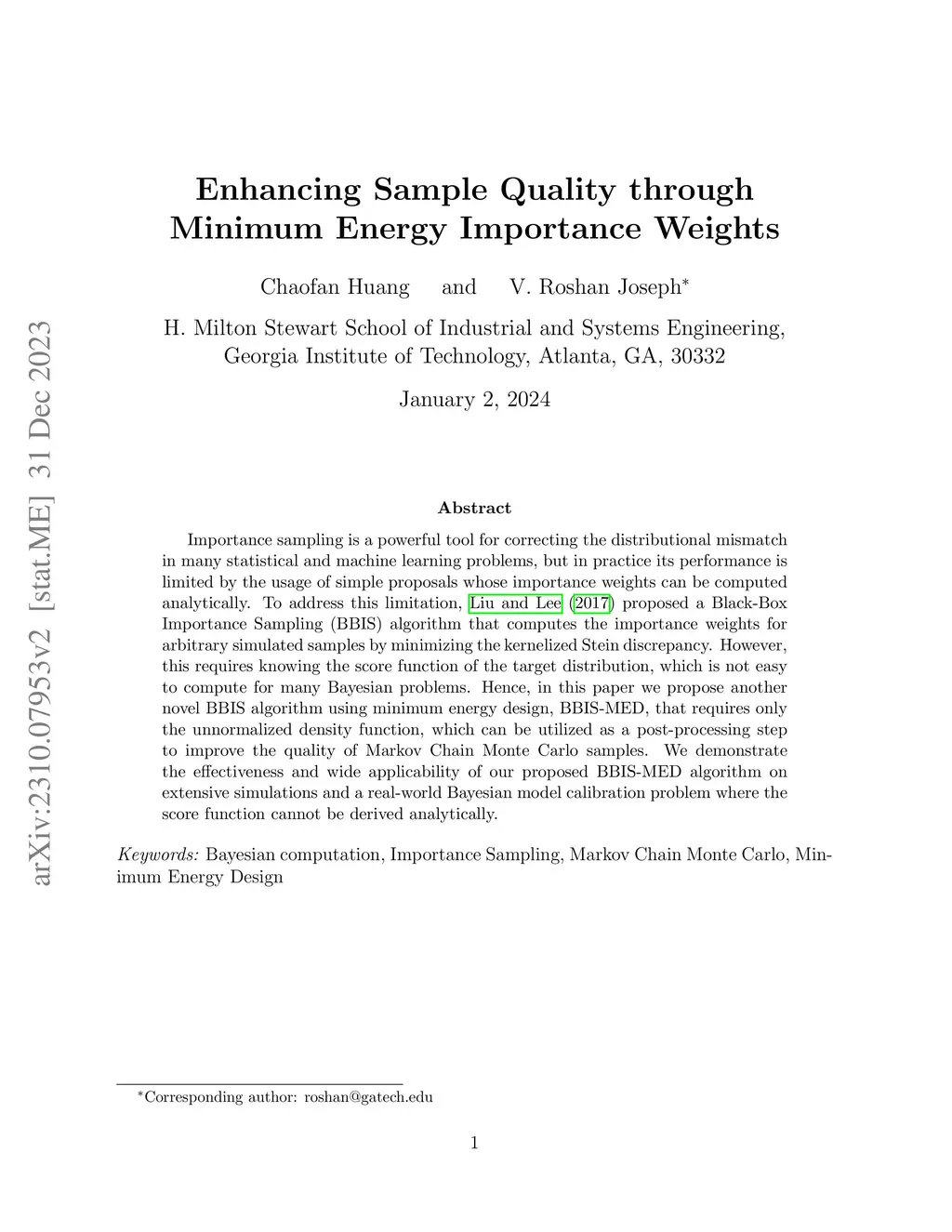 Enhancing Sample Quality through Minimum Energy Importance Weights