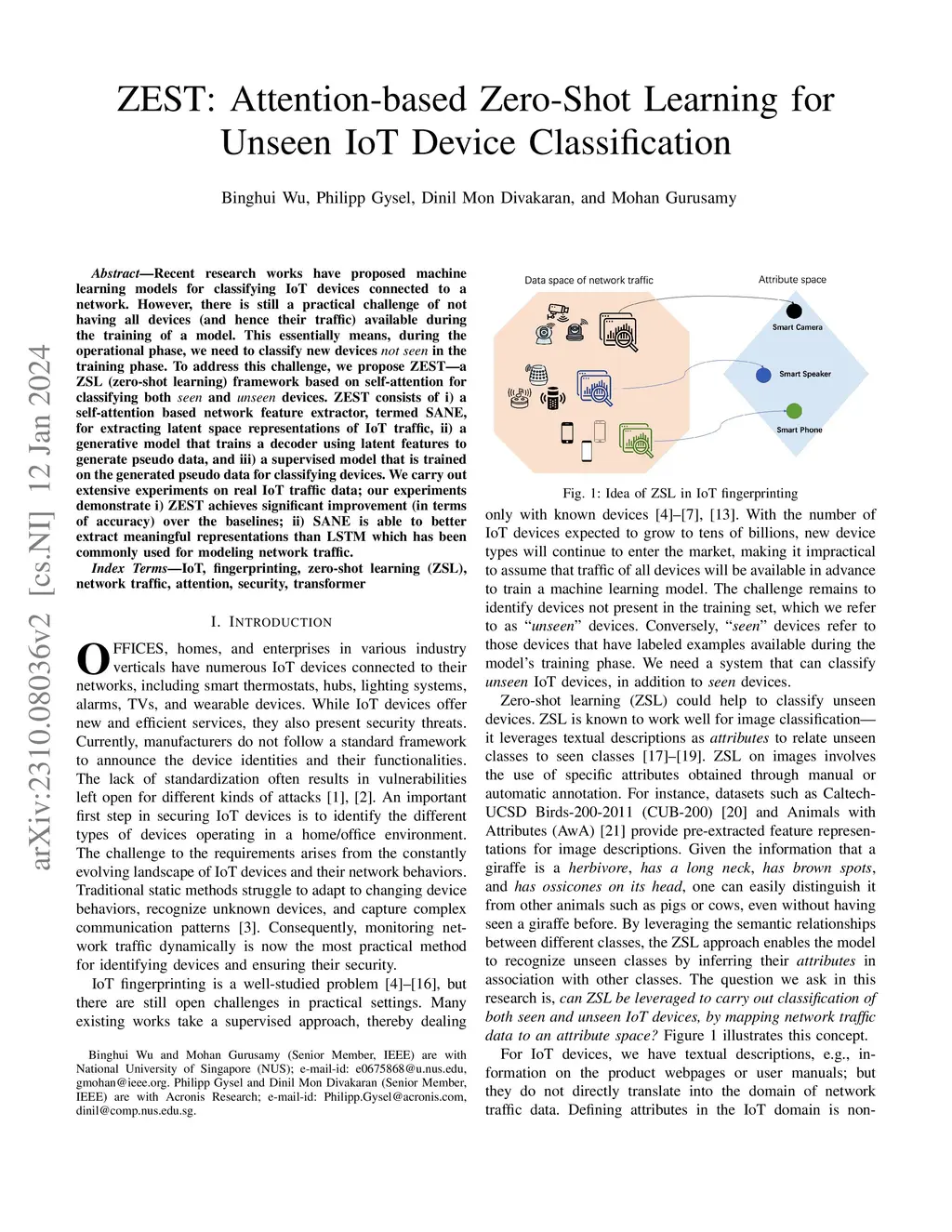 ZEST: Attention-based Zero-Shot Learning for Unseen IoT Device