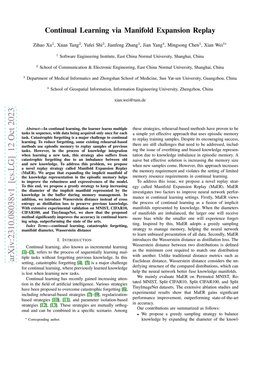 Continual Learning via Manifold Expansion Replay
