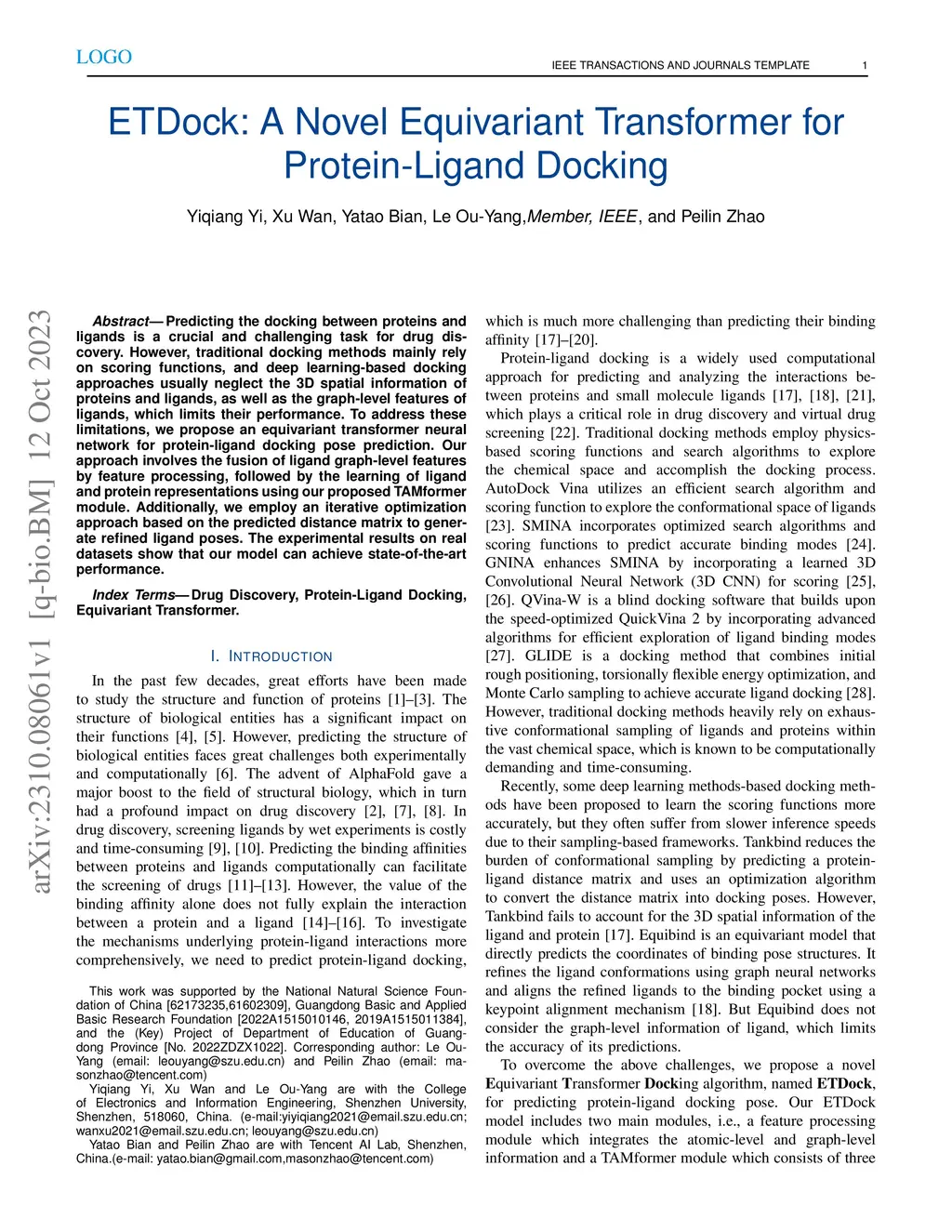 ETDock: A Novel Equivariant Transformer for Protein-Ligand Docking