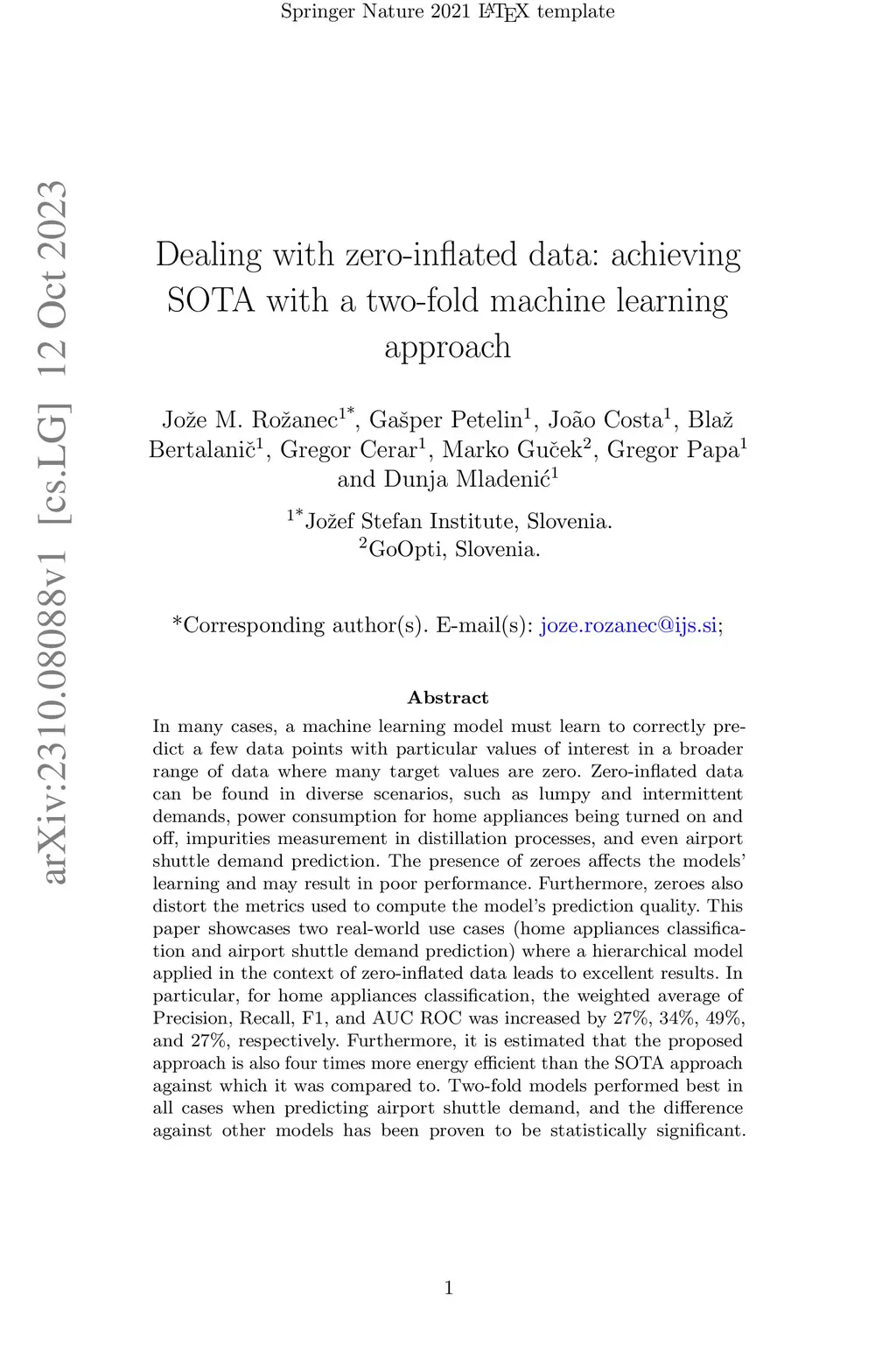 In many cases, a machine learning model must learn to correctly predict a few data points with particular values of interest in a broader range of data where many target values are zero. Zero-inflated data can be found in diverse scenarios, such as lumpy and intermittent demands, power consumption for home appliances being turned on and off, impurities measurement in distillation processes, and even airport shuttle demand prediction. The presence of zeroes affects the models' learning and may result in poor performance. Furthermore, zeroes also distort the metrics used to compute the model's prediction quality. This paper showcases two real-world use cases (home appliances classification and airport shuttle demand prediction) where a hierarchical model applied in the context of zero-inflated data leads to excellent results. In particular, for home appliances classification, the weighted average of Precision, Recall, F1, and AUC ROC was increased by 27%, 34%, 49%, and 27%, respectively. Furthermore, it is estimated that the proposed approach is also four times more energy efficient than the SOTA approach against which it was compared to. Two-fold models performed best in all cases when predicting airport shuttle demand, and the difference against other models has been proven to be statistically significant.