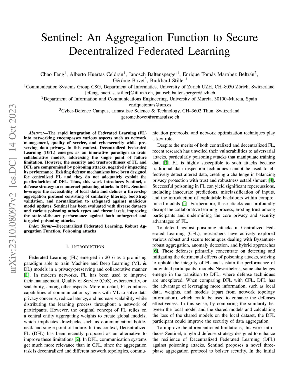 Sentinel: An Aggregation Function to Secure Decentralized Federated