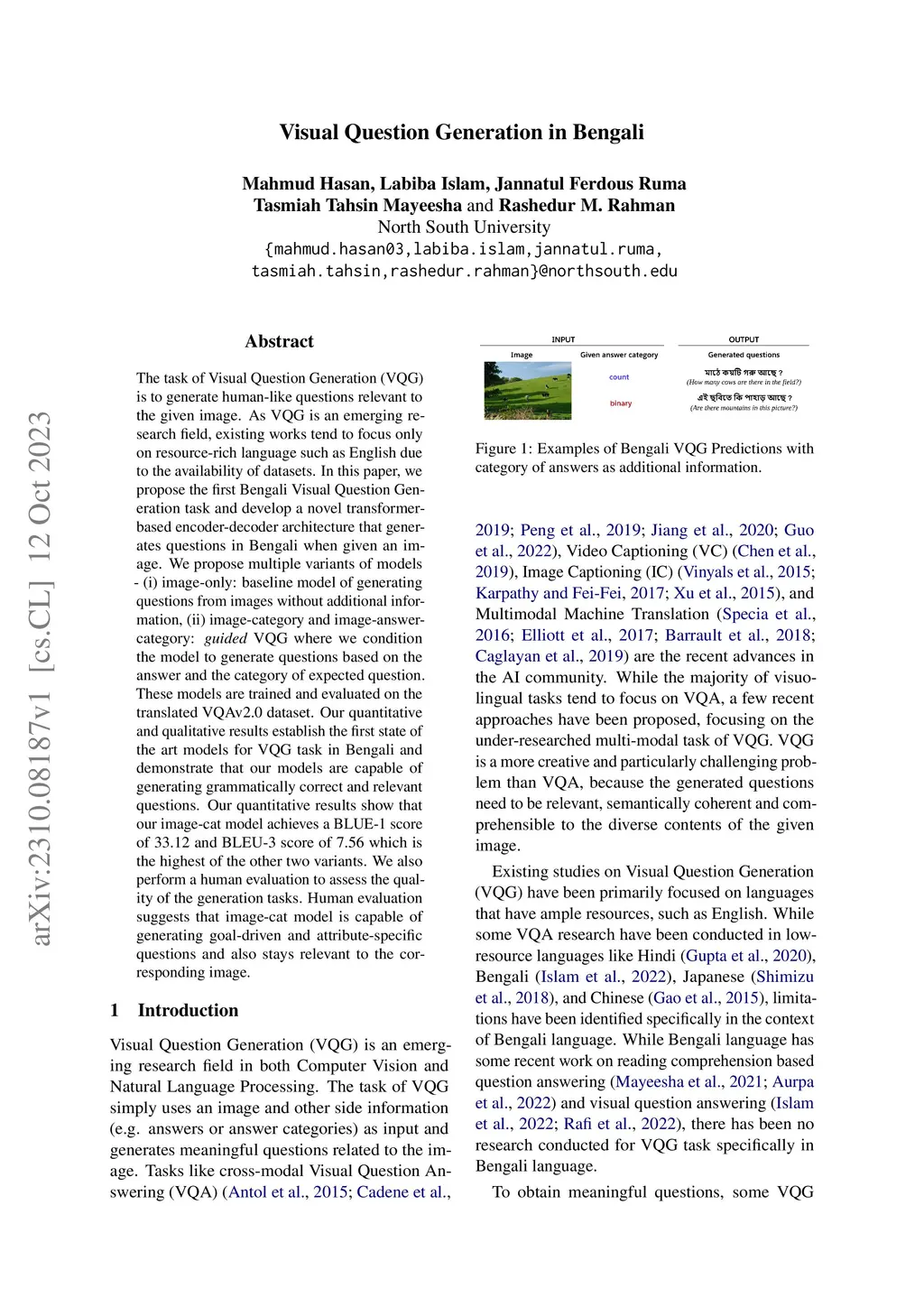 Visual Question Generation in Bengali