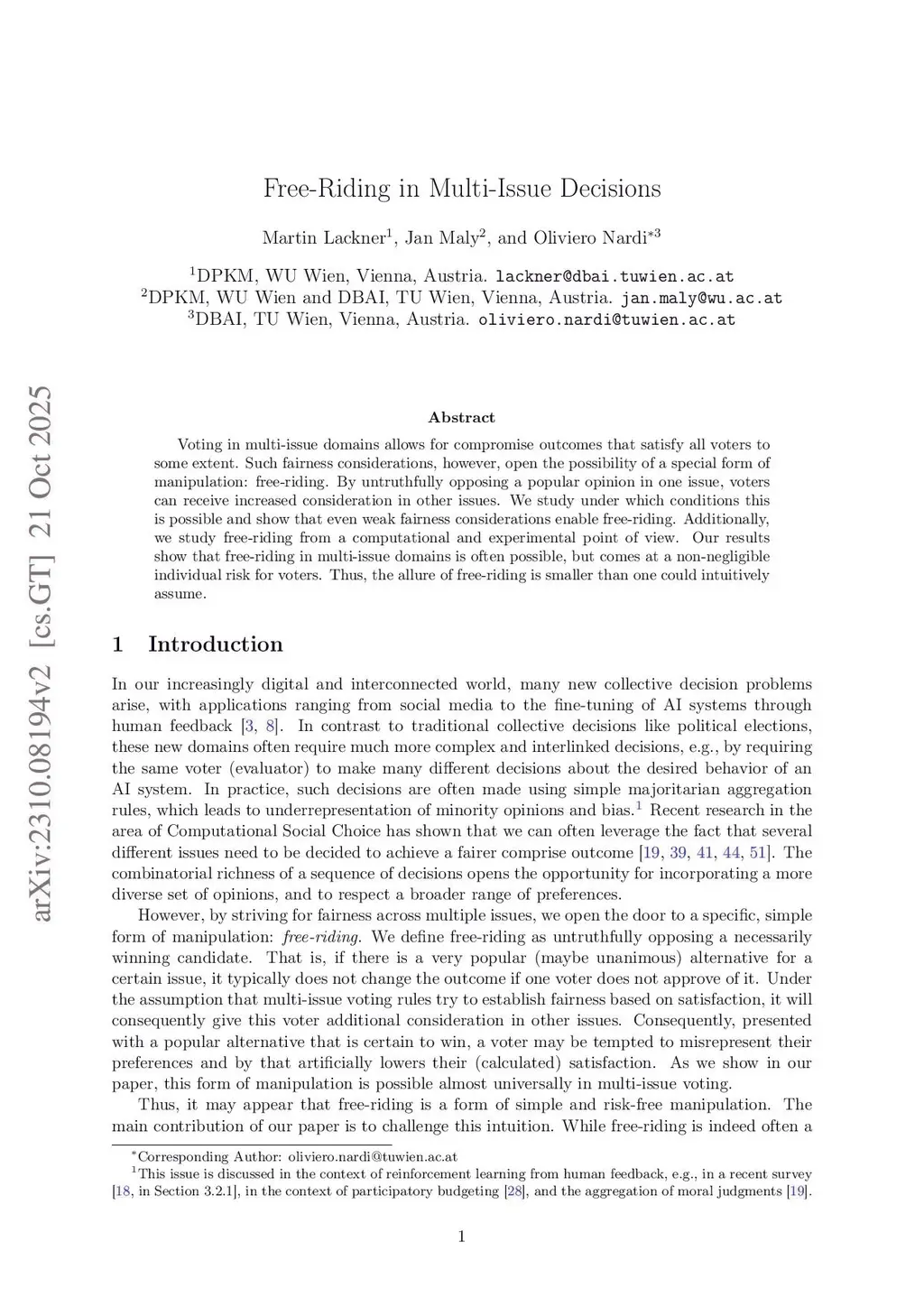 Voting in multi-issue domains allows for compromise outcomes that satisfy all voters to some extent, but such fairness considerations open the possibility of a special form of manipulation: free-riding, where voters untruthfully oppose a popular opinion in one issue to receive increased consideration in other issues; we study under which conditions this is possible and show that even weak fairness considerations enable free-riding, and through computational and experimental analysis, we find that while free-riding in multi-issue domains is often possible, it comes at a non-negligible individual risk for voters, making its allure smaller than one could intuitively assume.