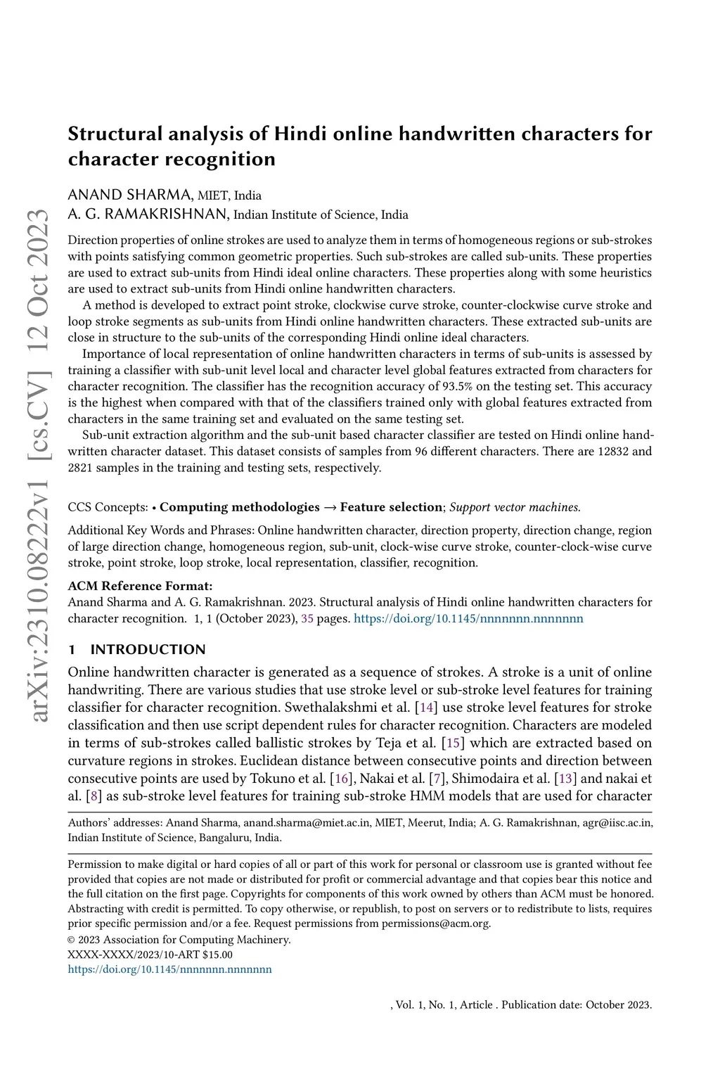 Direction properties of online strokes are used to analyze them in terms of homogeneous regions or sub-strokes with points satisfying common geometric properties. Such sub-strokes are called sub-units. These properties are used to extract sub-units from Hindi ideal online characters. These properties along with some heuristics are used to extract sub-units from Hindi online handwritten characters.\\ A method is developed to extract point stroke, clockwise curve stroke, counter-clockwise curve stroke and loop stroke segments as sub-units from Hindi online handwritten characters. These extracted sub-units are close in structure to the sub-units of the corresponding Hindi online ideal characters.\\ Importance of local representation of online handwritten characters in terms of sub-units is assessed by training a classifier with sub-unit level local and character level global features extracted from characters for character recognition. The classifier has the recognition accuracy of 93.5\% on the testing set. This accuracy is the highest when compared with that of the classifiers trained only with global features extracted from characters in the same training set and evaluated on the same testing set.\\ Sub-unit extraction algorithm and the sub-unit based character classifier are tested on Hindi online handwritten character dataset. This dataset consists of samples from 96 different characters. There are 12832 and 2821 samples in the training and testing sets, respectively.