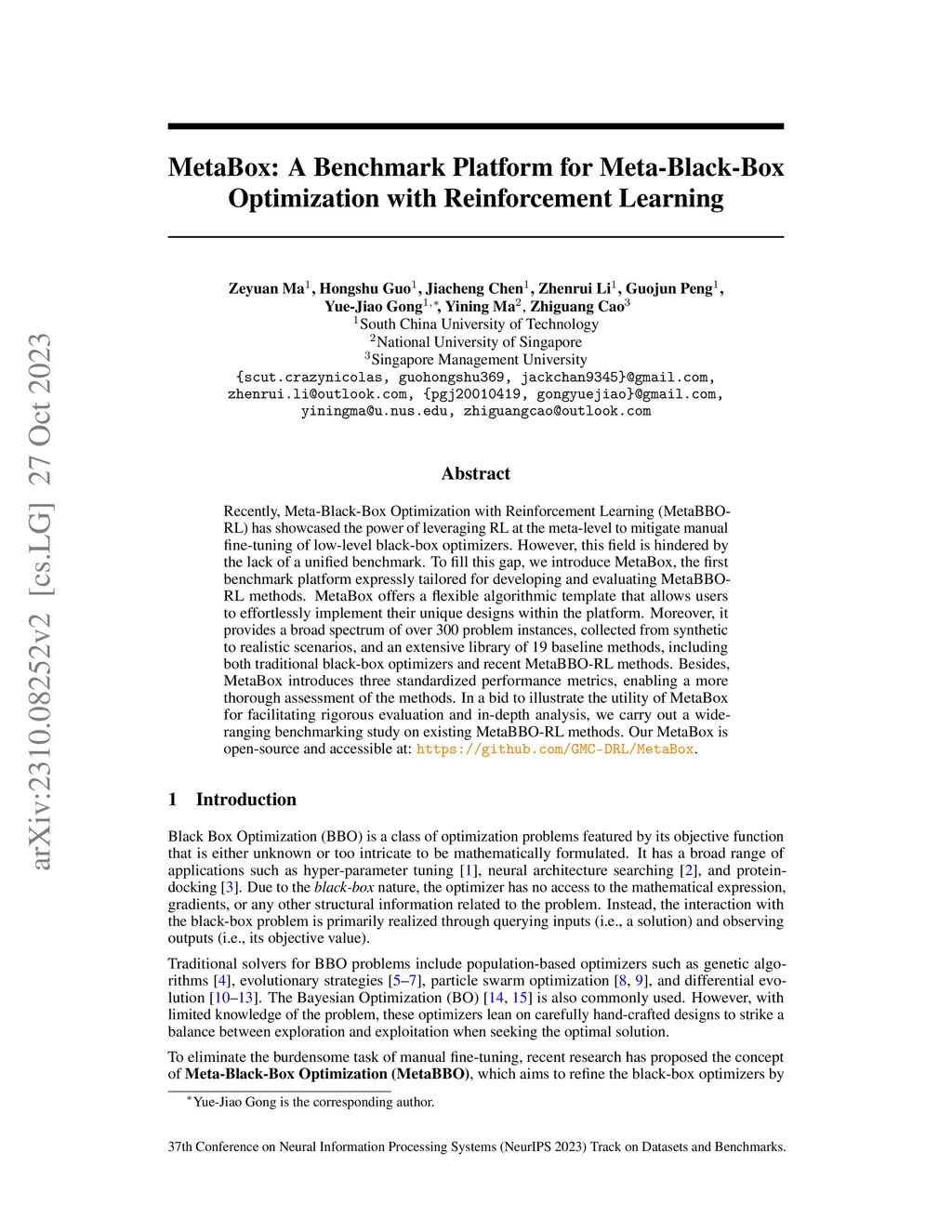 MetaBox: A Benchmark Platform for Meta-Black-Box Optimization with